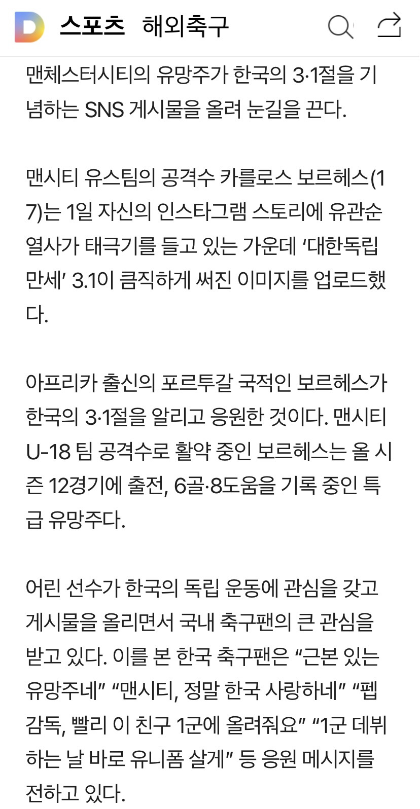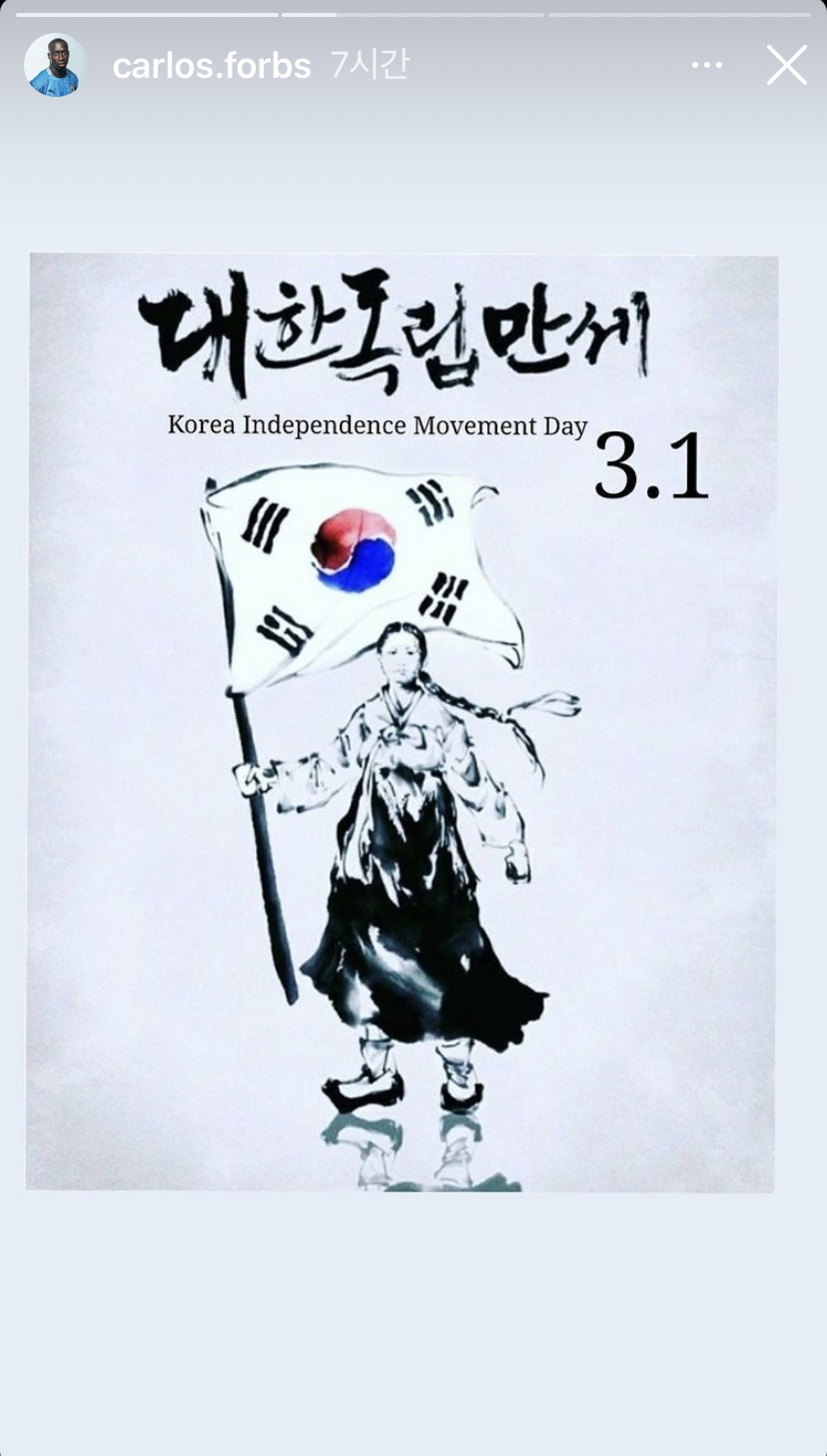 [유머] 맨시티 유망주 인스타 (feat. 삼일절)