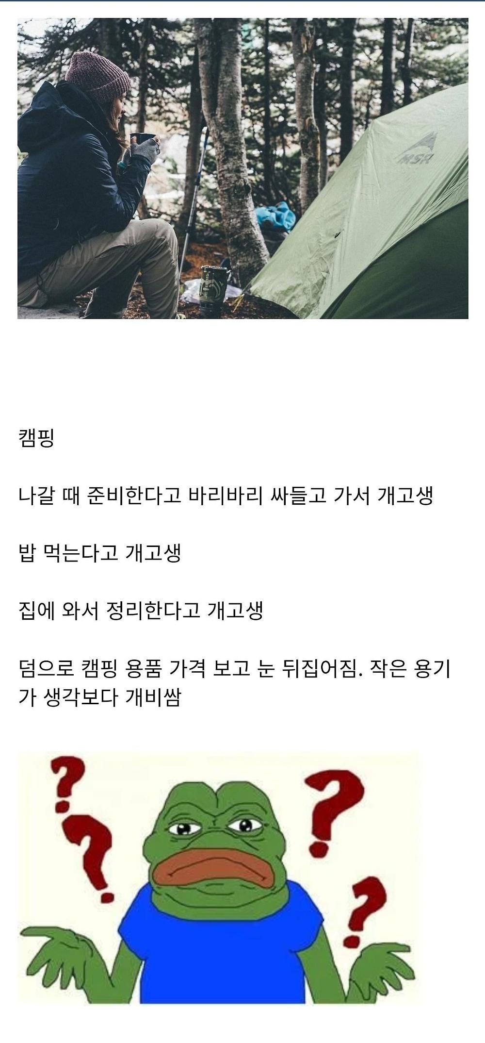 캠핑은 돈쓰고 고생하러 가는건데 거기서 얻는걸 이해못하는건 당연하겠지