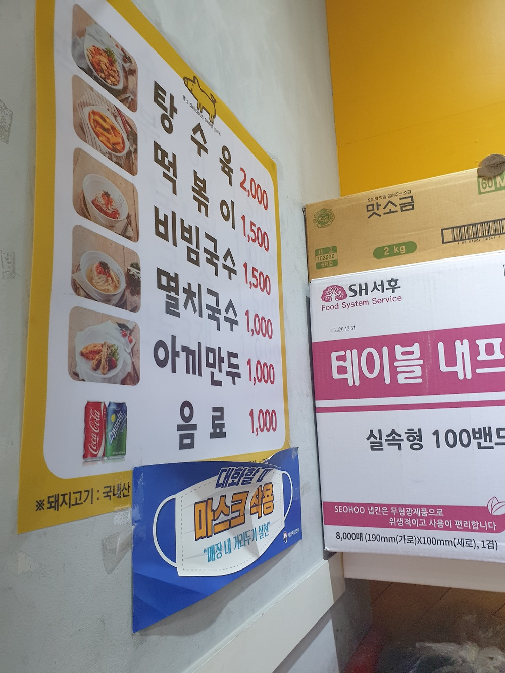 탕수육 저게 2천원..?? 저거 두개하면 짱개집 탕수육 소짜리 넘을거같은데 ㅋㅋㅋ