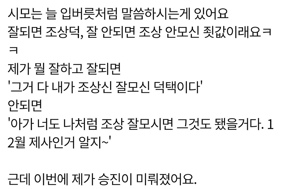 제사상도 저러지만 기독교도 저럴탠대? 자기가 잘되면 신이 보우한거고 못나면 신이 시련준건데 야훼도 악령이내 ㅋㅋ