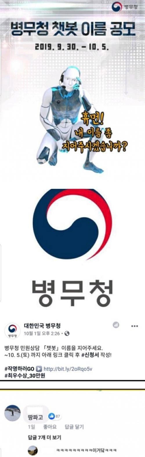 [유머] 병무청 챗봇 이름 공모
