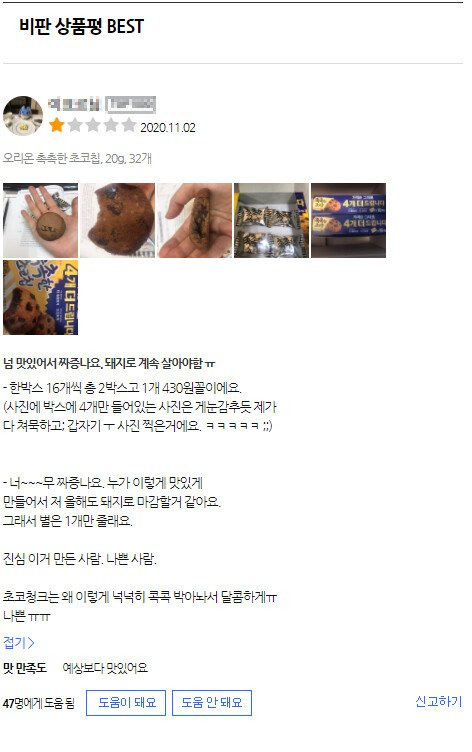 별점 하나로 브랜드 이미지가 좌지우지 되는 세상에 저딴 개소리를 쓰면서 리뷰를 해? 먹질 말던가 장난하자는것도 아니고 지금.