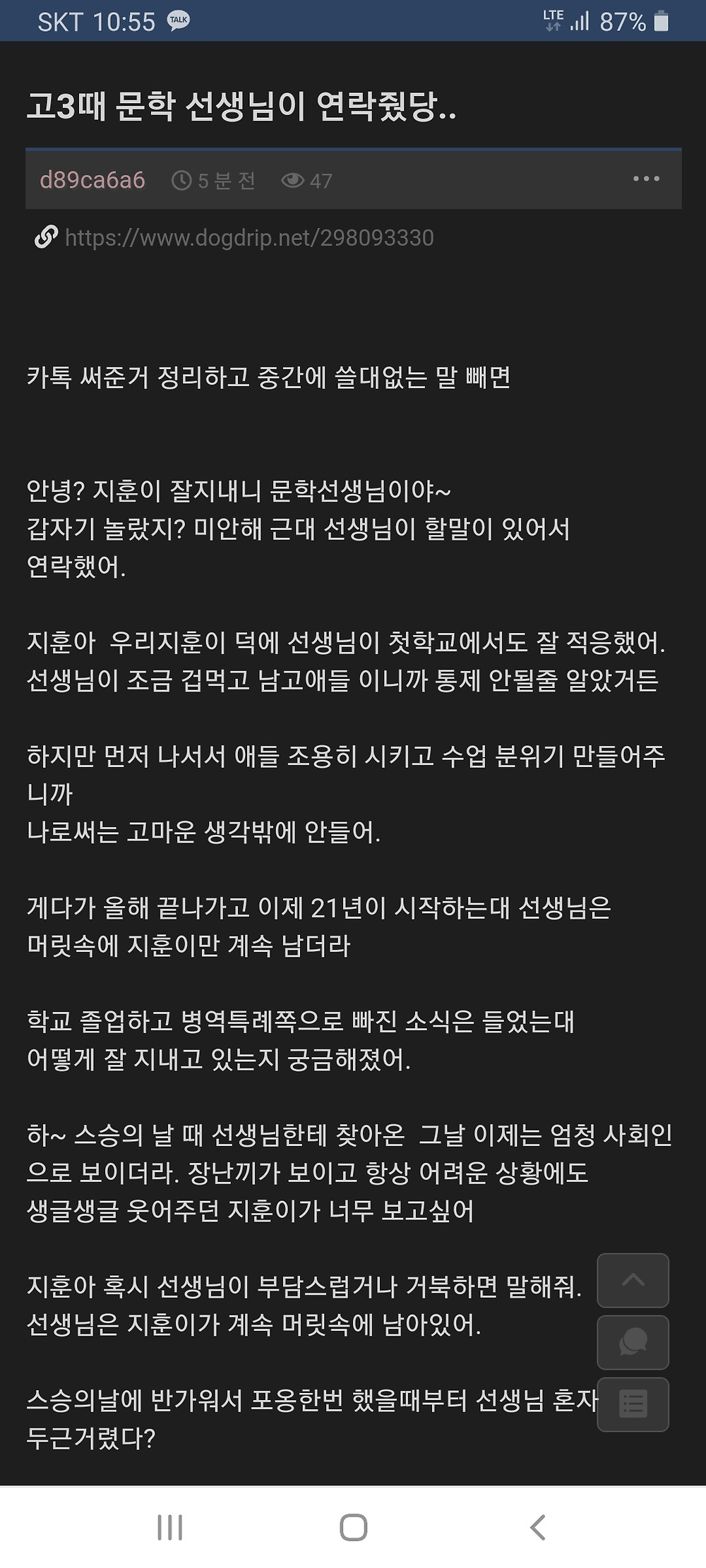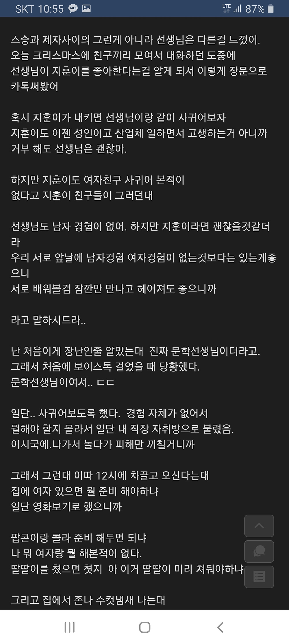 여자는 자기가 힘들고 외로울때 알아주는 이성에게 호감이 간다고 하대요. 그때 일종의 흔들다리 효과마냥 힘들때 솔선해서 도와주고 한 학생이 기억에 남고 그게 좀 다른 방향으로 발전했나보네요. 물론 남자는 잘생겼을겁니다.