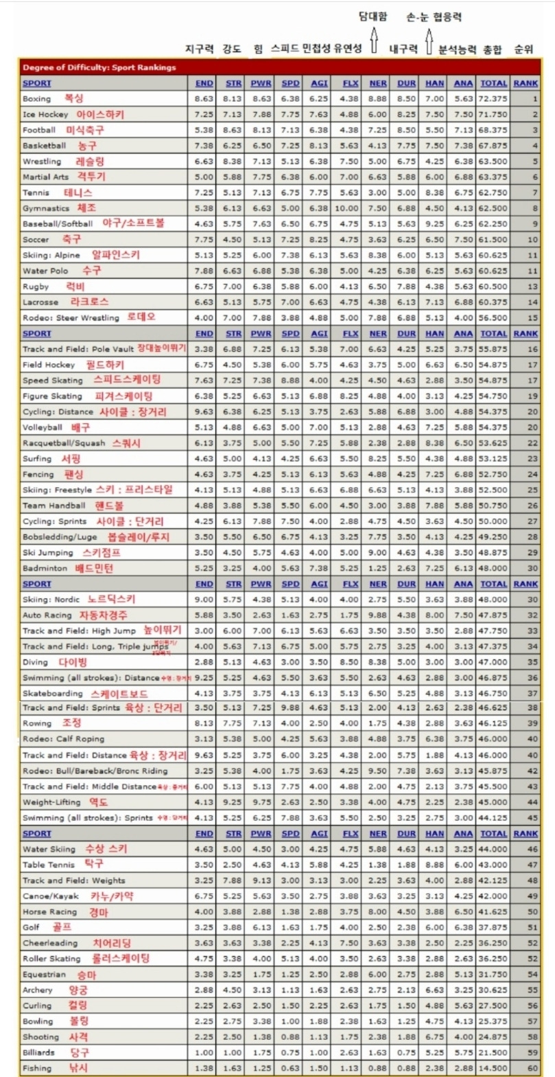 그 예전에 듣기로 미국에서 피지컬 좋으면 미식축구 야구 순으로 빠진다고 들엇고 다른국가는 또 다르고 한거 생각하면 "인기"가 중요하지 않을가요?