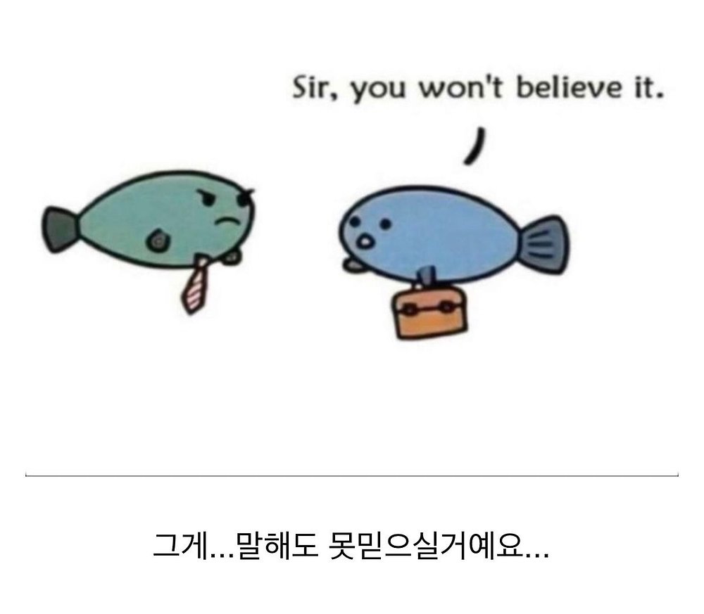 이 짤에서 알 수 있는 사실 인간이 바다를 가르던 시기는 모세의 출애굽기 시절 홍해 가르기로, 약 3500년 전인데 저 당시의 물고기 간에는 이미 회사라는 개념이 있는 것으로 보아 고등어의 시초라고 추측.