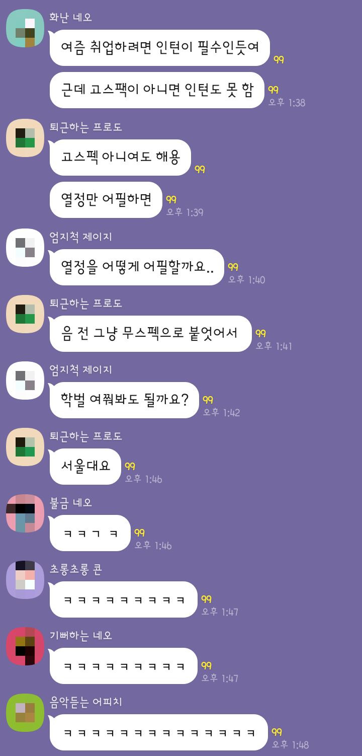서울대나 나온놈이 무스펙의 뜻을 모르나.