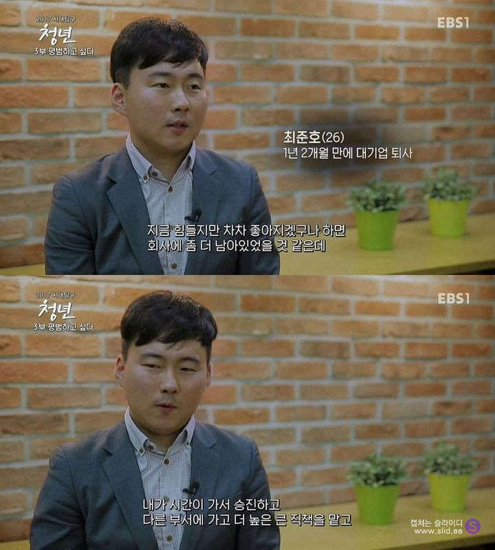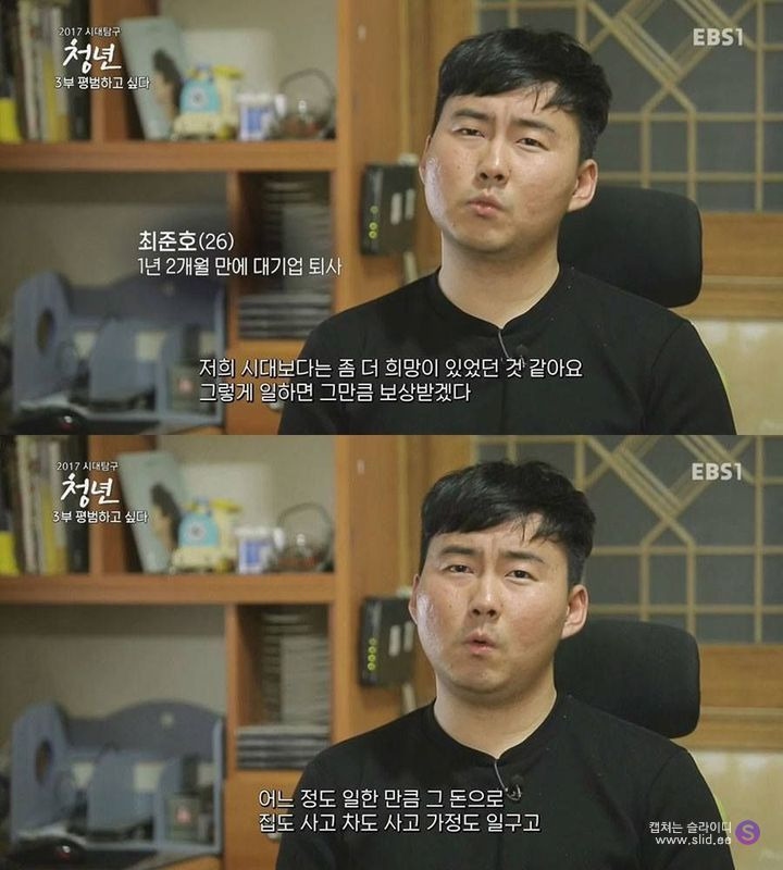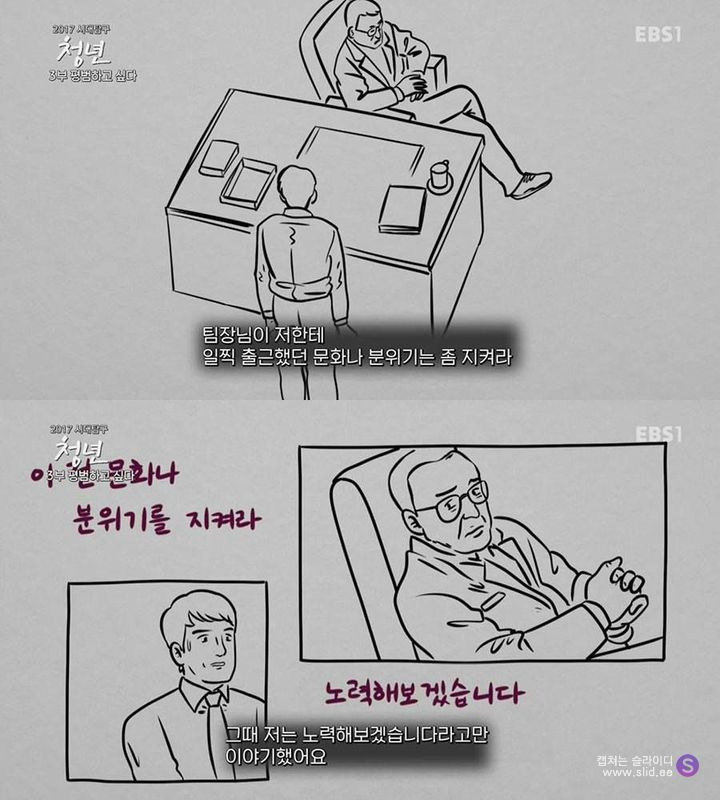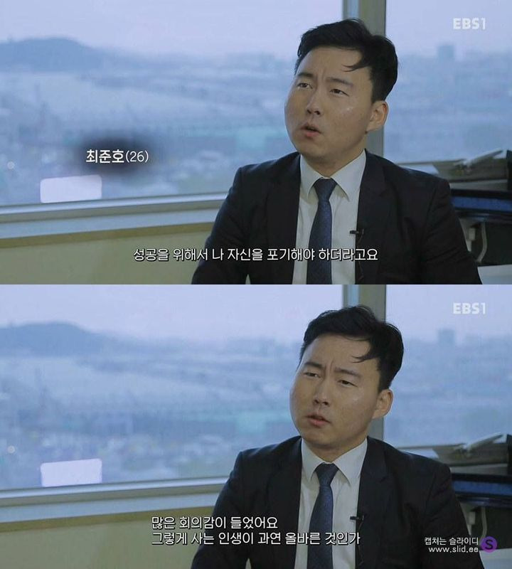 하고픈 일이 꿈이 아니라 그저 대기업에 입사하는걸 목표로 하고 살아오다가 막상 대기업에 입사하니 꿈은 이루었는데 남은건 적성도 흥미도 없는 일과 산더미 같은 업무량. 그러니 남은건 정말 죽지못해 다니는 일상.