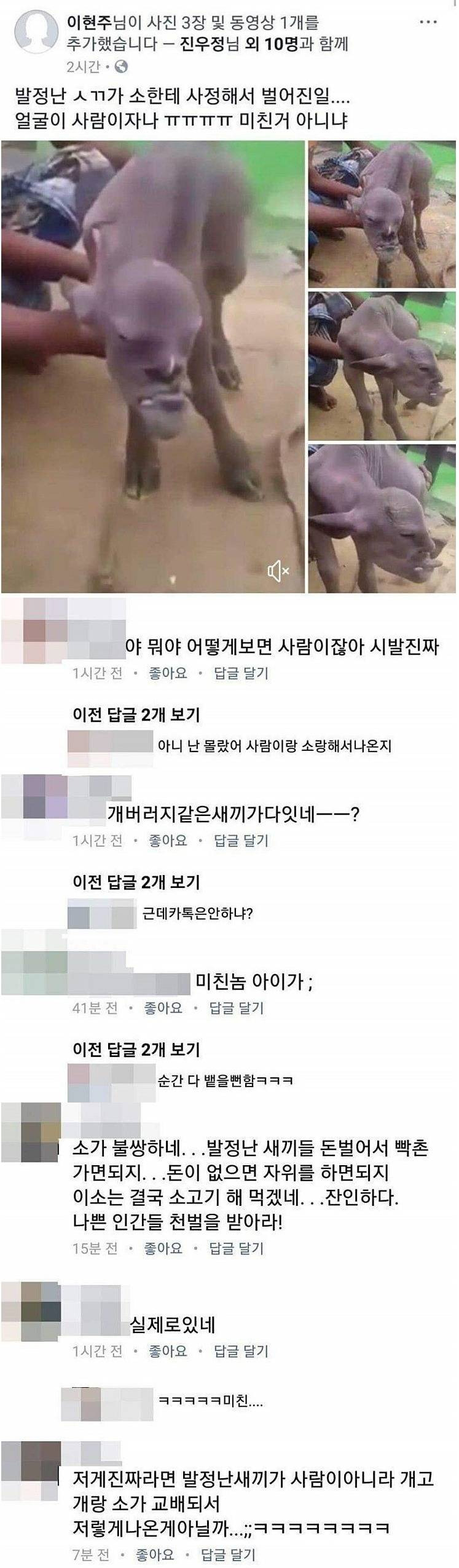 지들은 뭐랑 교배했길래 뇌에 구멍이 났냐 광우병 소랑 교배해서 태어났나.