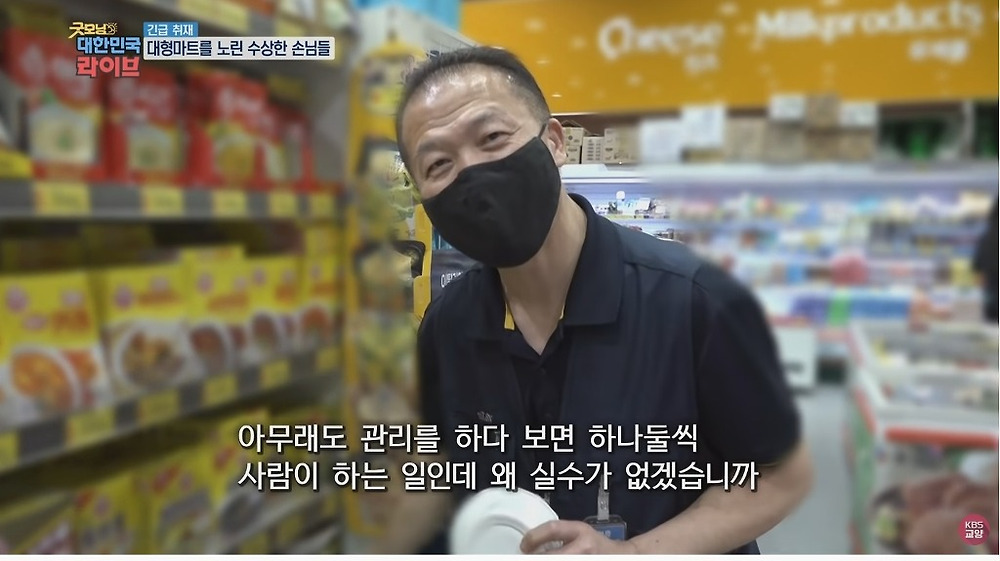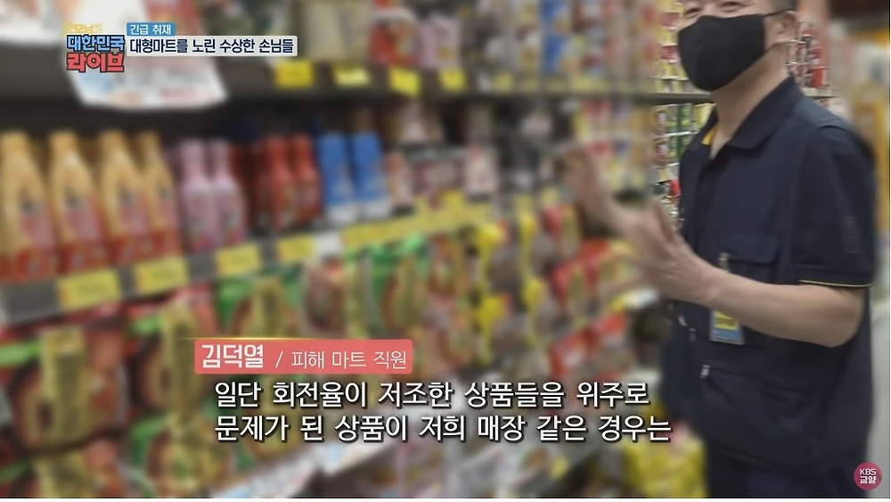 마트 공산품 팀장으로 근무 7년차입니다 물건 입점하는 거래처,직원 4명이 매일같이 파트 나눠 확인해도 나오는게 유통기한지난 상품들입니다 저희 매장 450평 기준 매장내 공상품 가짓주가 12000가지 정도 되는데 손님들은 이미 뒤에 진열되어있는 상품이 유통기한이 길다는걸 인지해서 맨뒤에서 진열된 물건을 꺼내가시는데 변심으로 그 물건을 구매를 하지 않으면 맨 앞에다가 뫃고 가시니까 관리 정말정말 힘들어요 매일같이 정리해도 나옵니다 물론 매장입장에선 화 나는 상황은 맞지만 매장에서 관리를 못한거기때문에 할 말은 없습니다 특히 유제품,냉장,냉동식품쪽이 심하죠