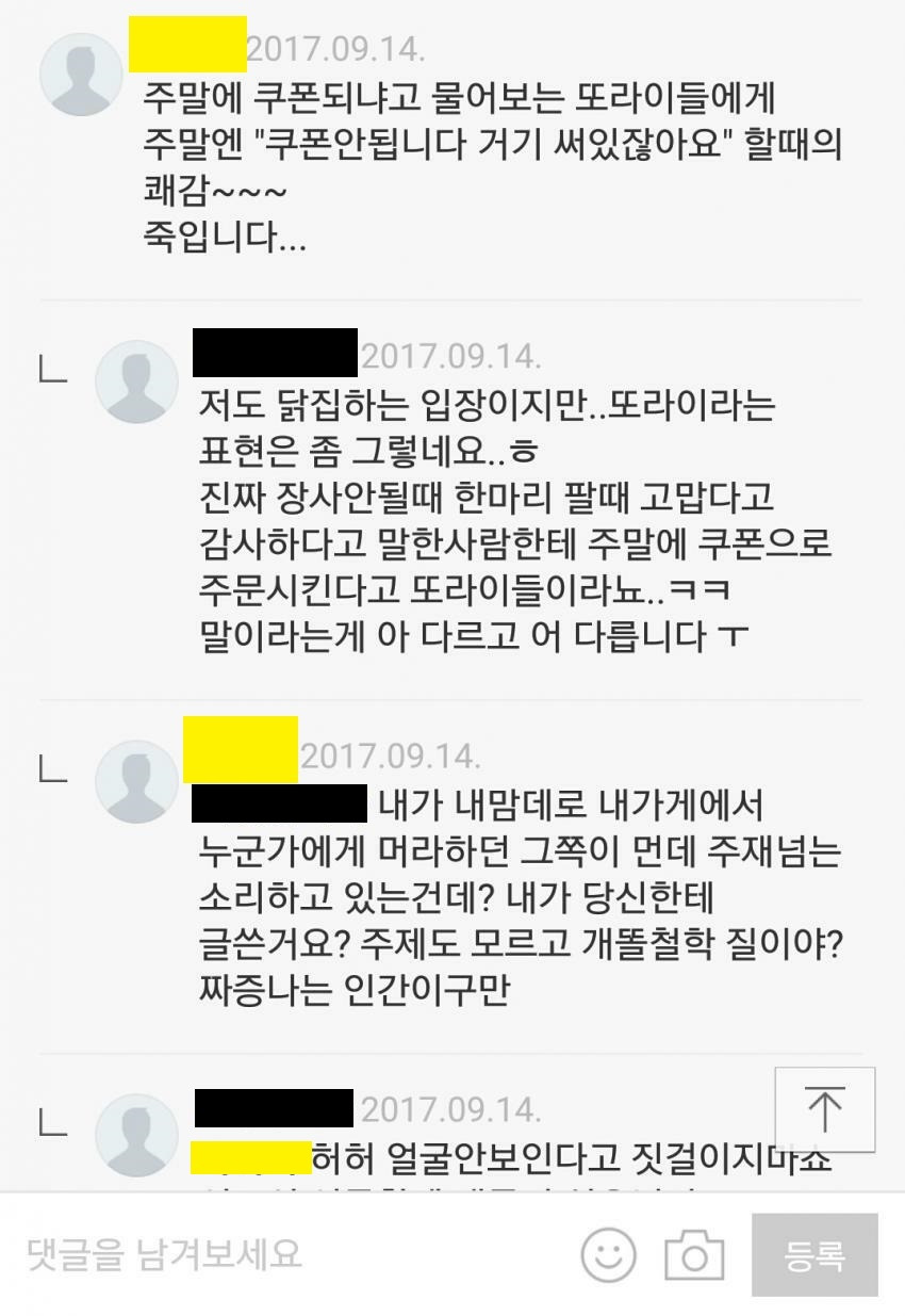 저딴 새끼들 가끔 별점 낮은 리뷰에 선 오브 비치~ 이지랄하면서 댓글달다 신세 조짐