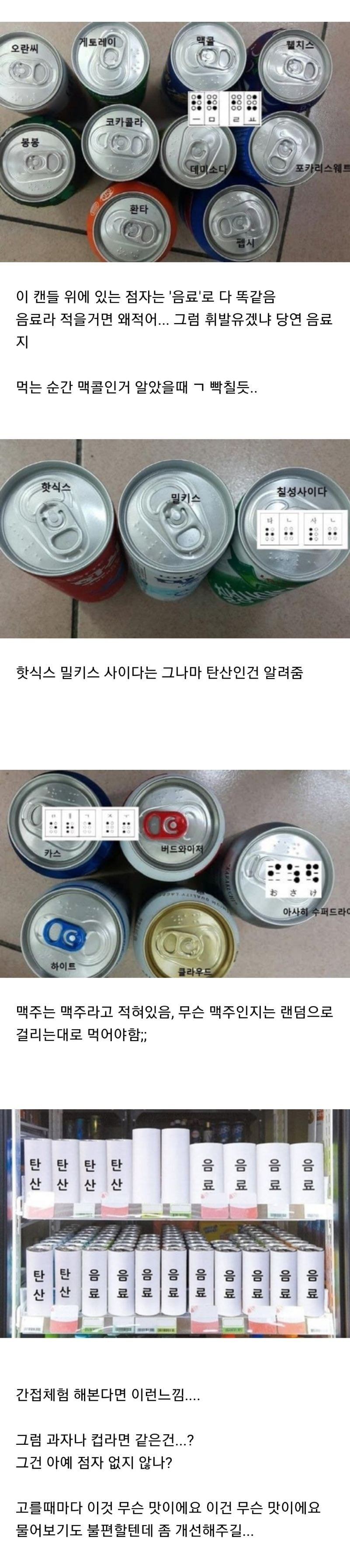 [유머] 음료수 캔 위에 있는 점자 이정도면 무용지물 아님..?