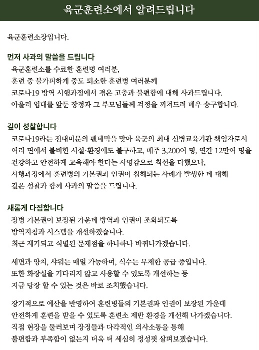 [유머] 육군훈련소 : 훈련병 여려분께 사과 드립니다