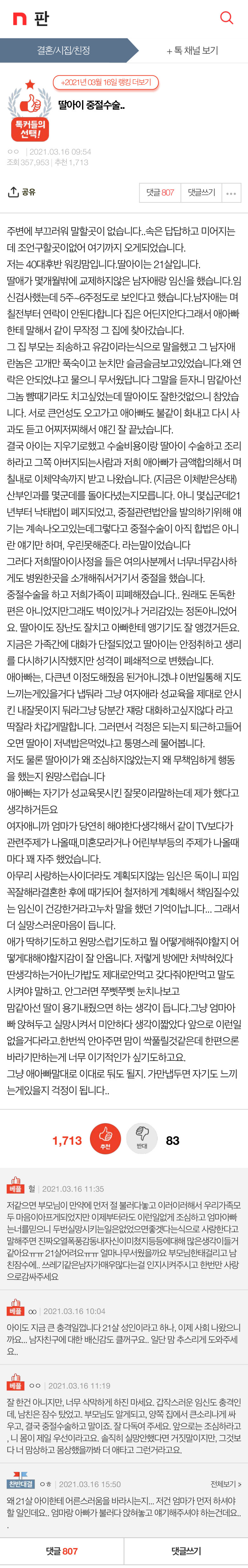 [유머] 네이트판 딸아이 중절 (낙태) 수술