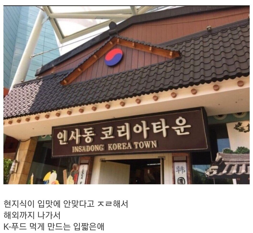 ㄹㅇ 회사에서 연장자랑 해외 출장가면 주구장창 한식당만 감 현지식 먹다가 힘들어서 가는게 아니라 그냥 한달동안 현지식을 한번도 안먹음 ㅋㅋㅋ