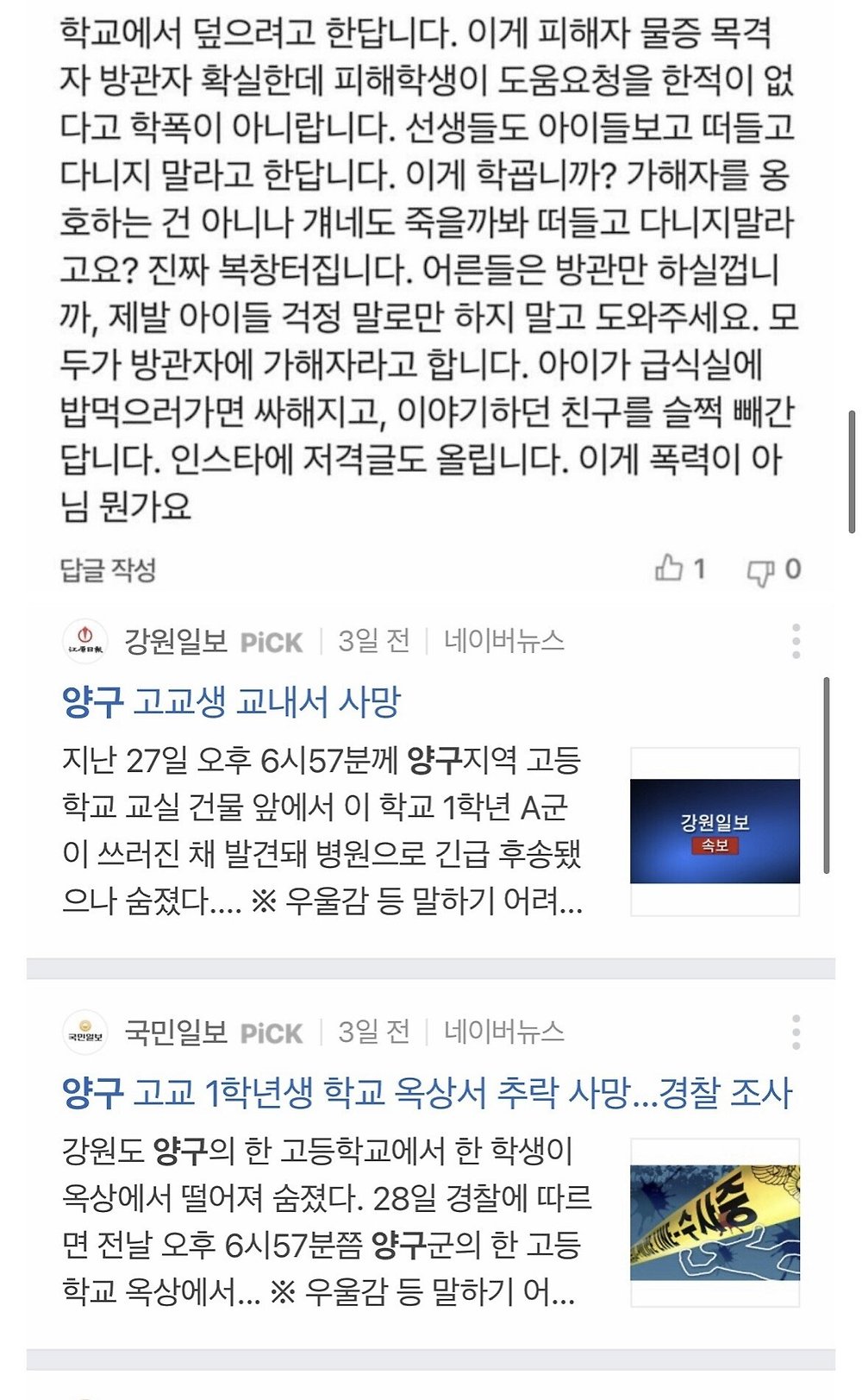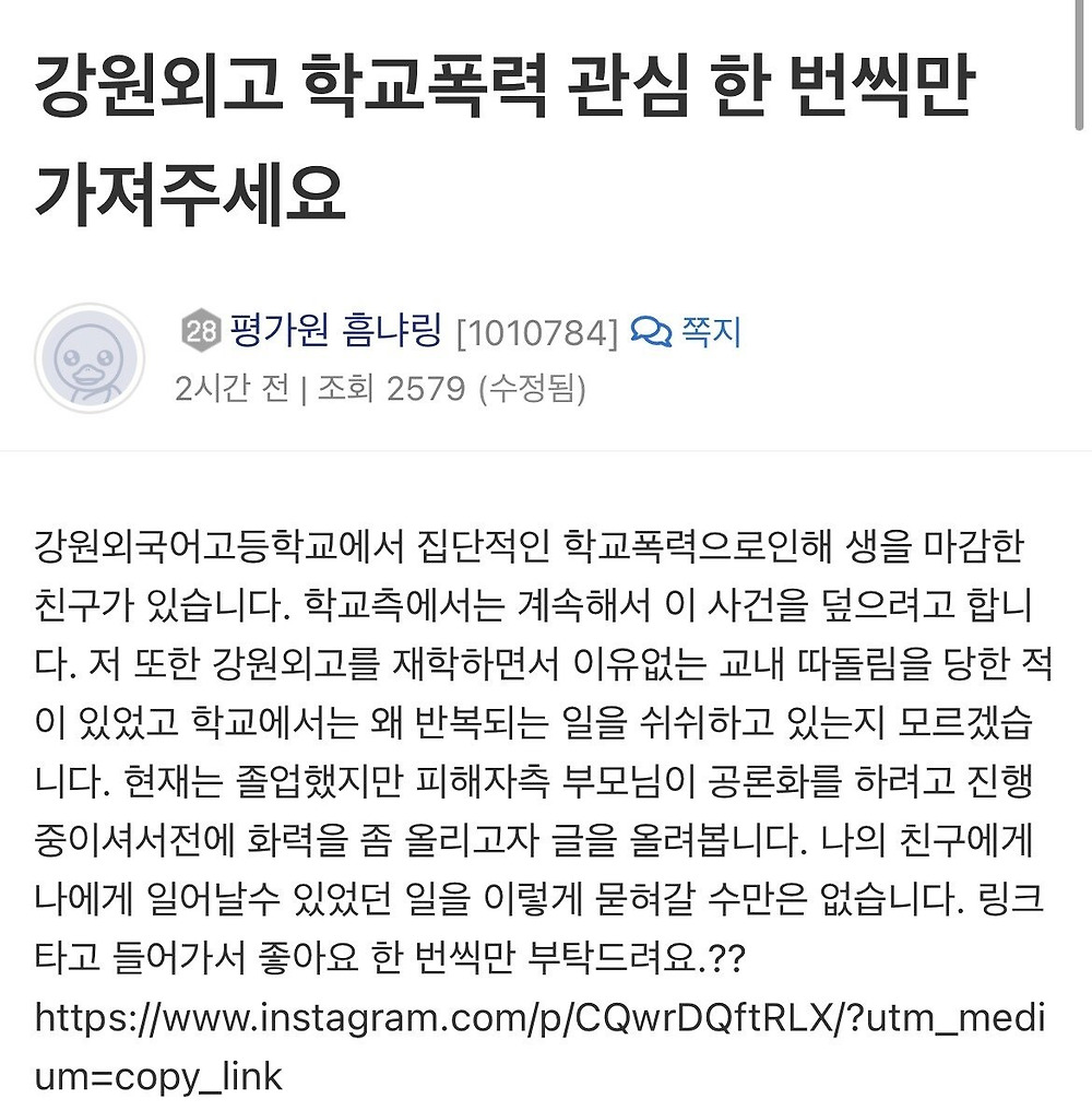 [유머] 강원외고 학교폭력 관심 좀 가져줘
