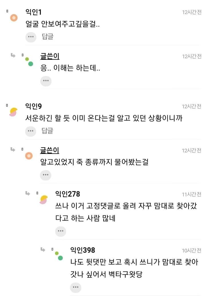 저걸 어떻게 이해해줘 보기 싫으면 사간다 할때부터 사양했어야지 킹치만 궁예질 해보면 저새끼 미리 말 안하고 찾아갔다가 댓글에 욕먹고 미리 말하고 갔다고 말했을 가능성 99%