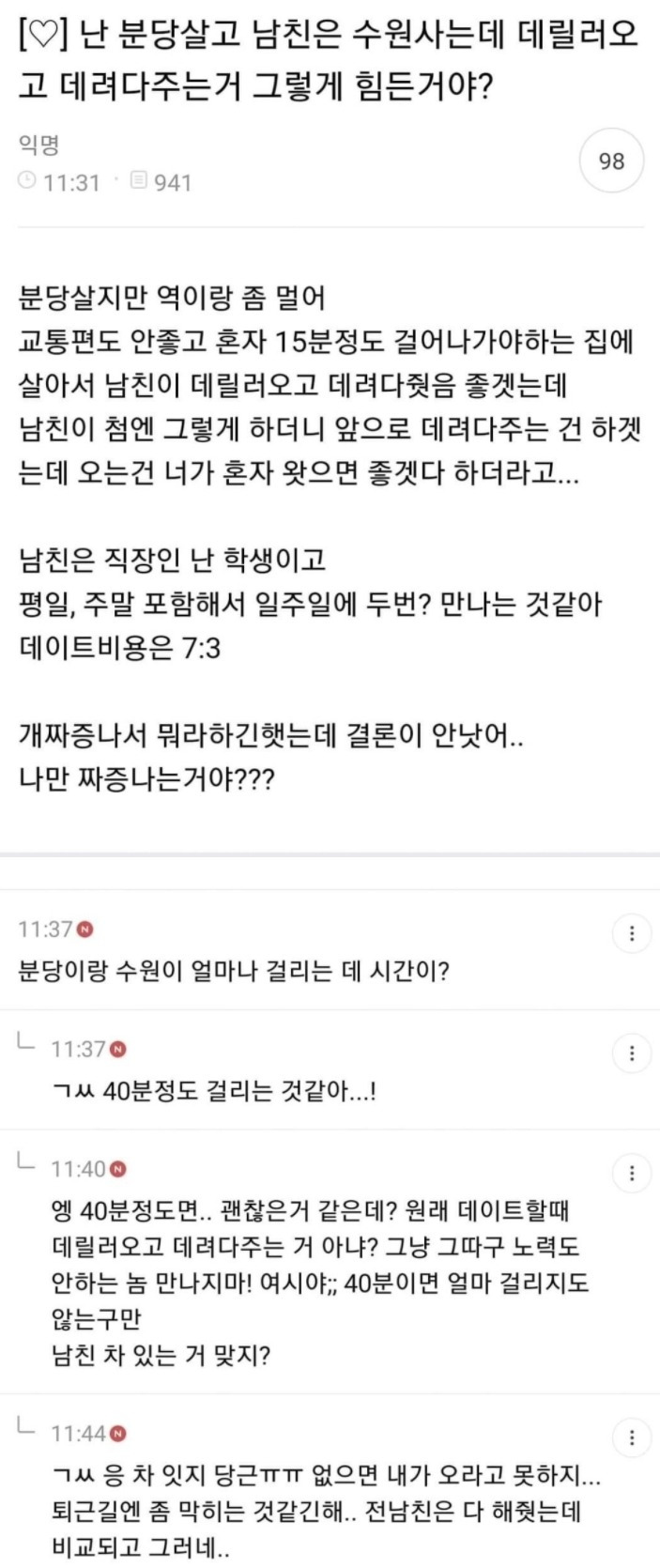 너의 15분을 위해서 왕복 80분을 쓰라는거냐 ㅋㅋ 이래도 여성인권 타령이다
