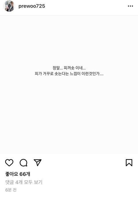 그걸 본 박철우는 피가 거꾸로 솟는다는 인스타를 남김.