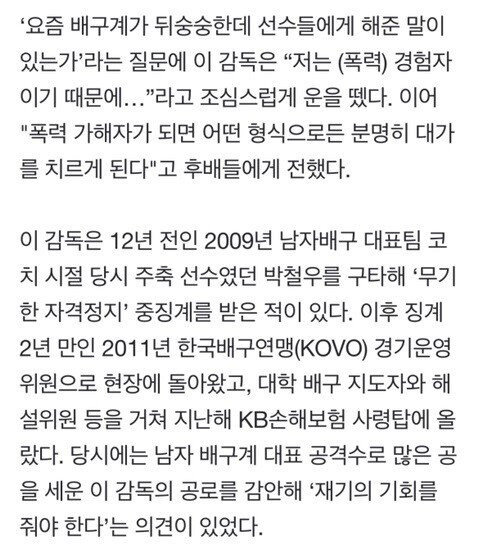 그리고 현재 배구계에 터진 폭행논란에 대해 인터뷰까지 함.