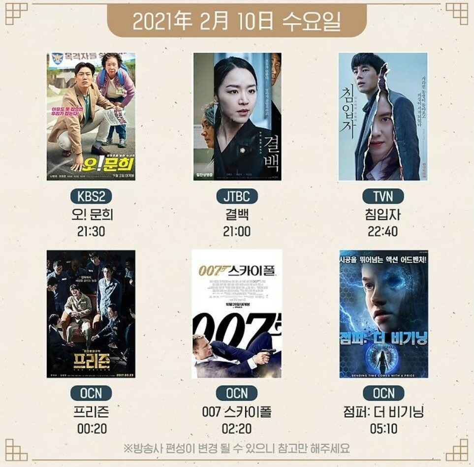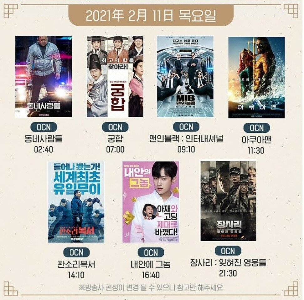 [유머] 설날 특선 영화 편성표