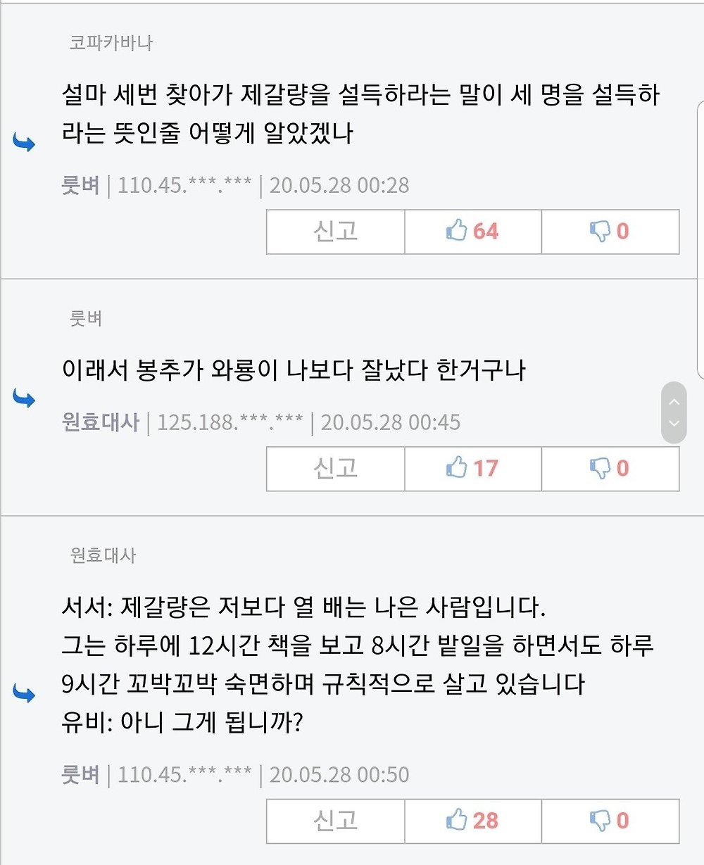 [유머] 촉한에 제갈량이 3명이면 벌어지는 일들.
