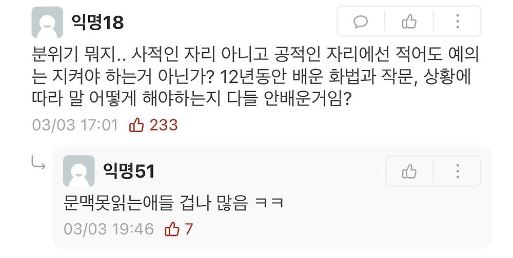 기본적으로 어려운 사람을 대하는 방법을 모르는 애들이 많아진건 사실인듯