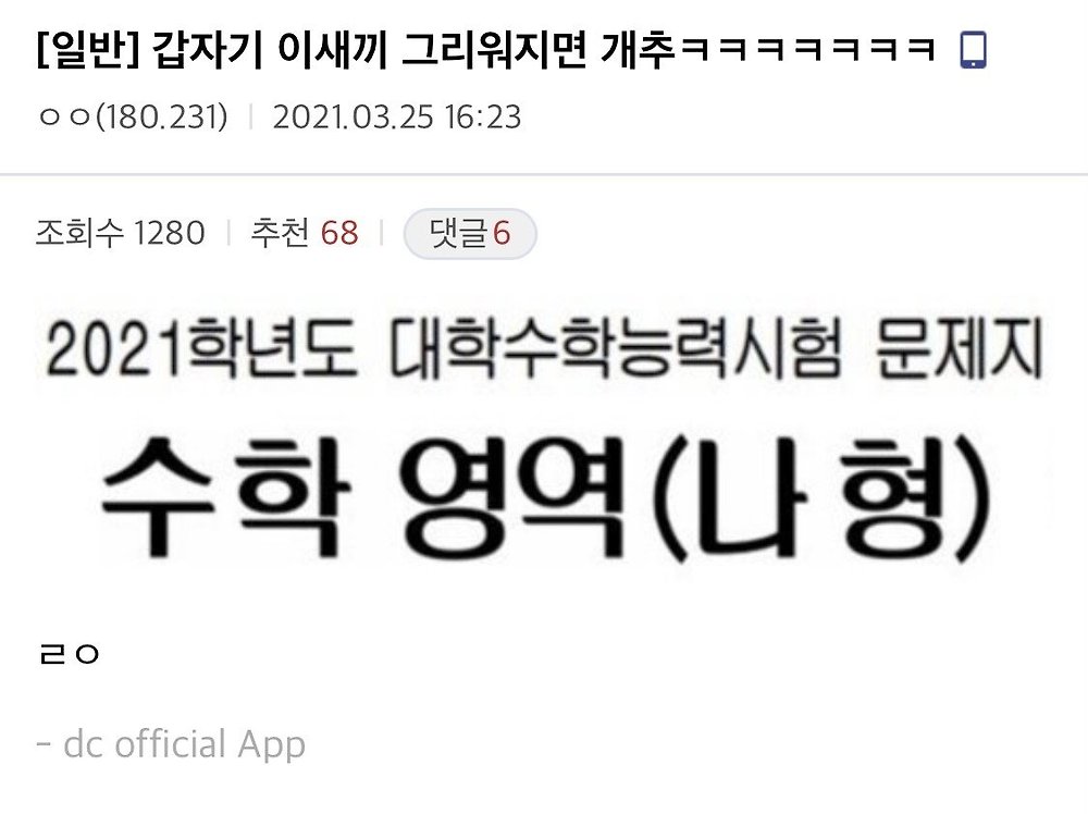 문과선택과목 어차피 확통이라 똑같고 이과에서 기하/미적 선택이라 예전보다 난이도 다운됐는데.... 쟤들은 나랑 다른세계 수학을 하는건가