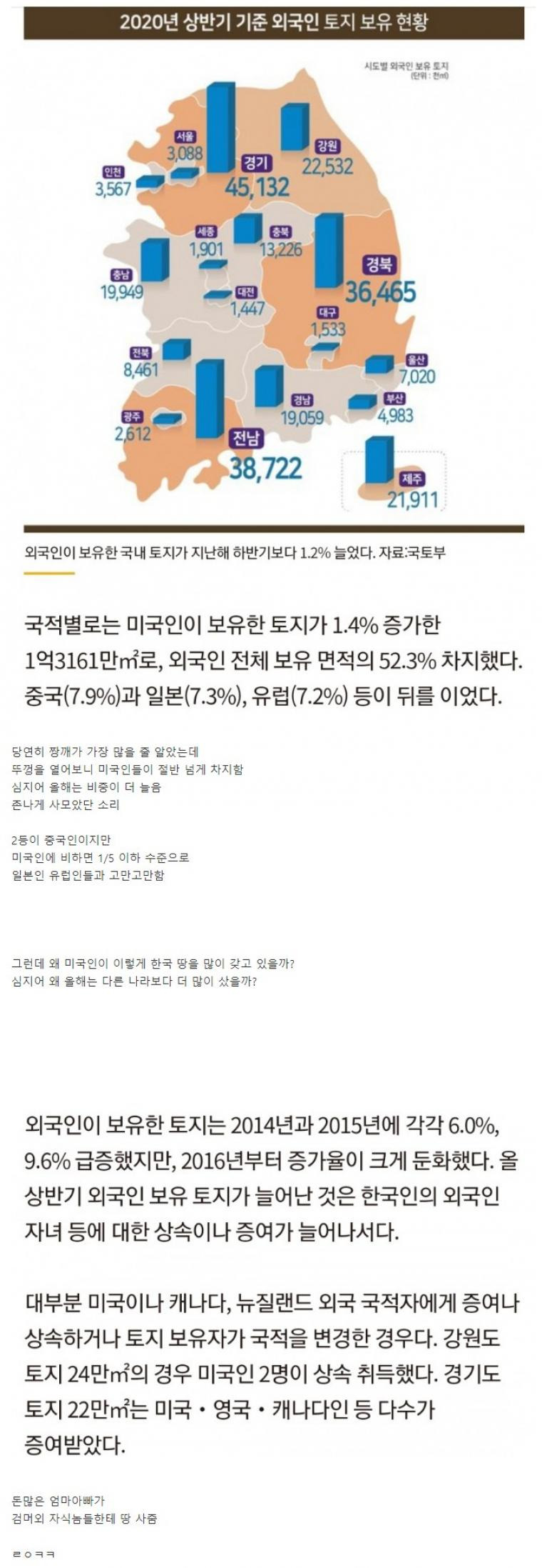 [유머] 외국인 한국 토지 소유 실태