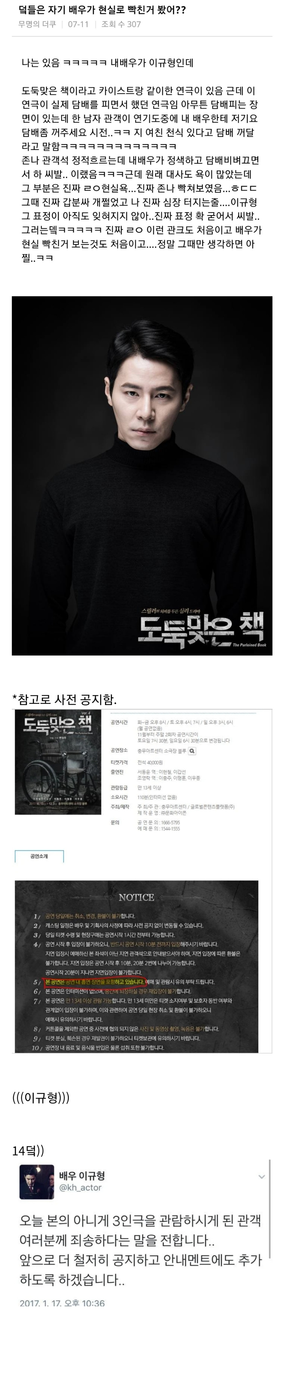 [유머] '유명 배우 이모씨, 담배 꺼달란 요청에 욕설 파문'