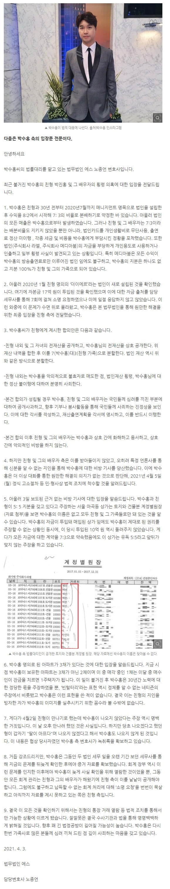 [유머] 박수홍이 친형에게 제시했던 합의안
