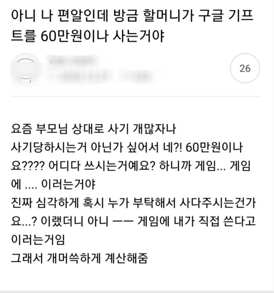[유머] 구글기프트카드 60만원 사가는 할머니를 붙잡은 편돌이