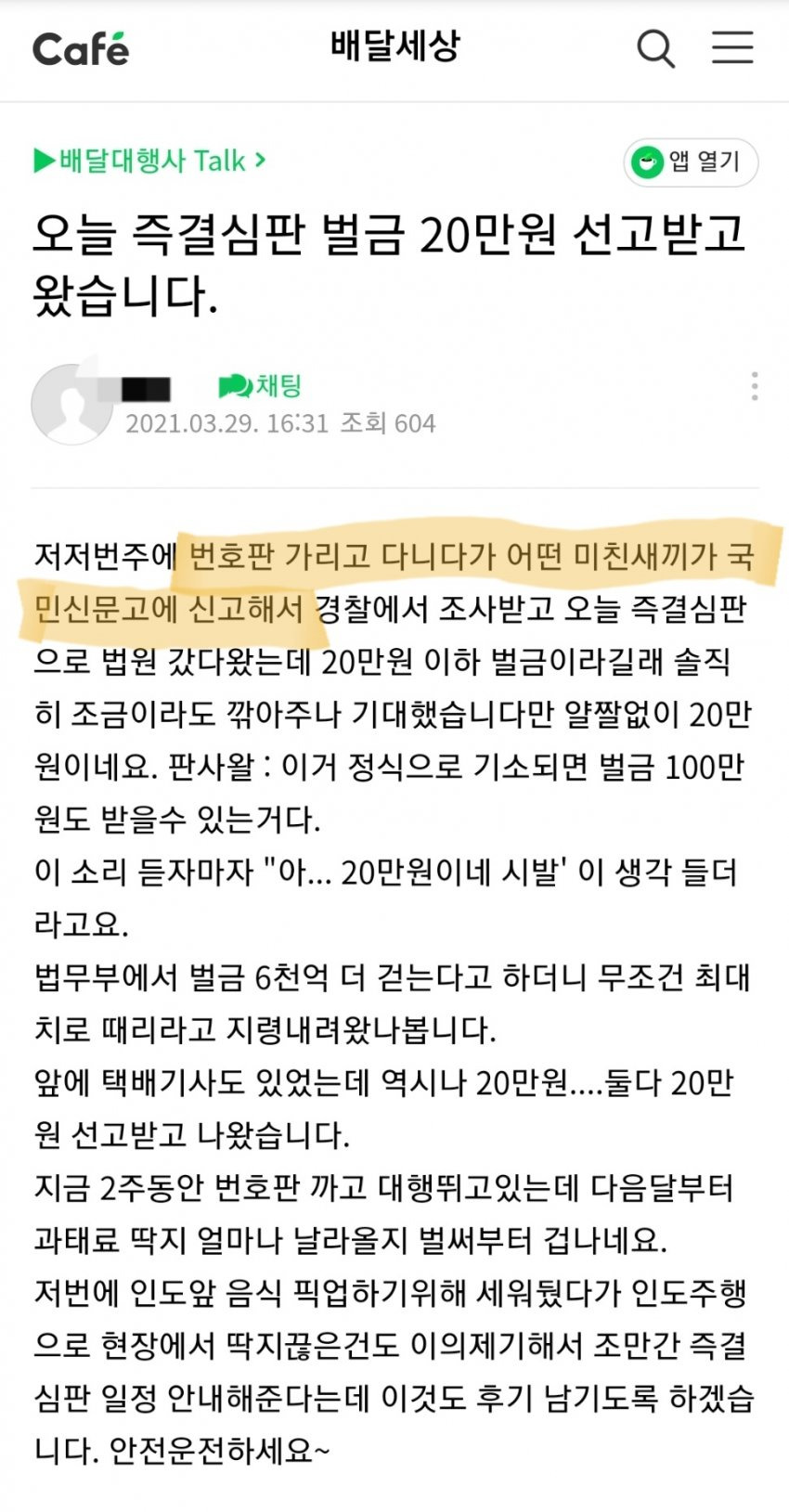 택배기사님들 업무중 혹은 배달중으로 하면 면제될텐데..