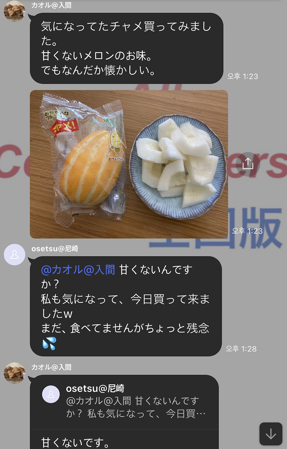 A : 그동안 신경쓰였던 참외를 사 보았습니다.