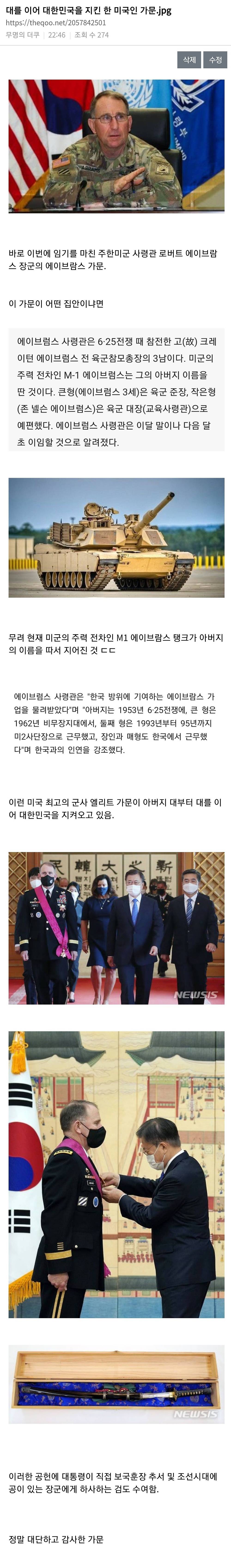 [유머] 대를 이어 대한민국을 지킨 한 미국인 가문