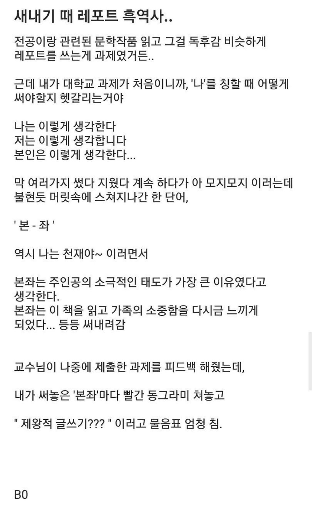 제왕적 글쓰기의 문제가 아니라 나 본인 저 본좌 모두 감점 받았을 듯.