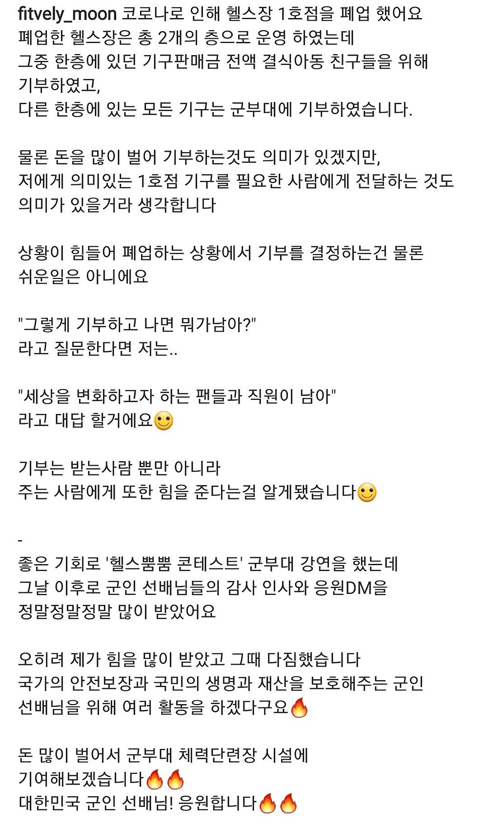 [유머] 헬스장 폐업 후 운동기구를 군부대에 기부한 핏블리