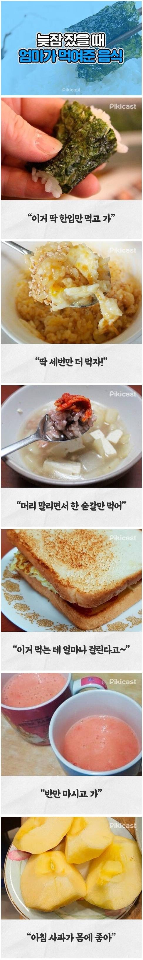 [유머] 늦잠 잤을 때 엄마가 먹여준 음식
