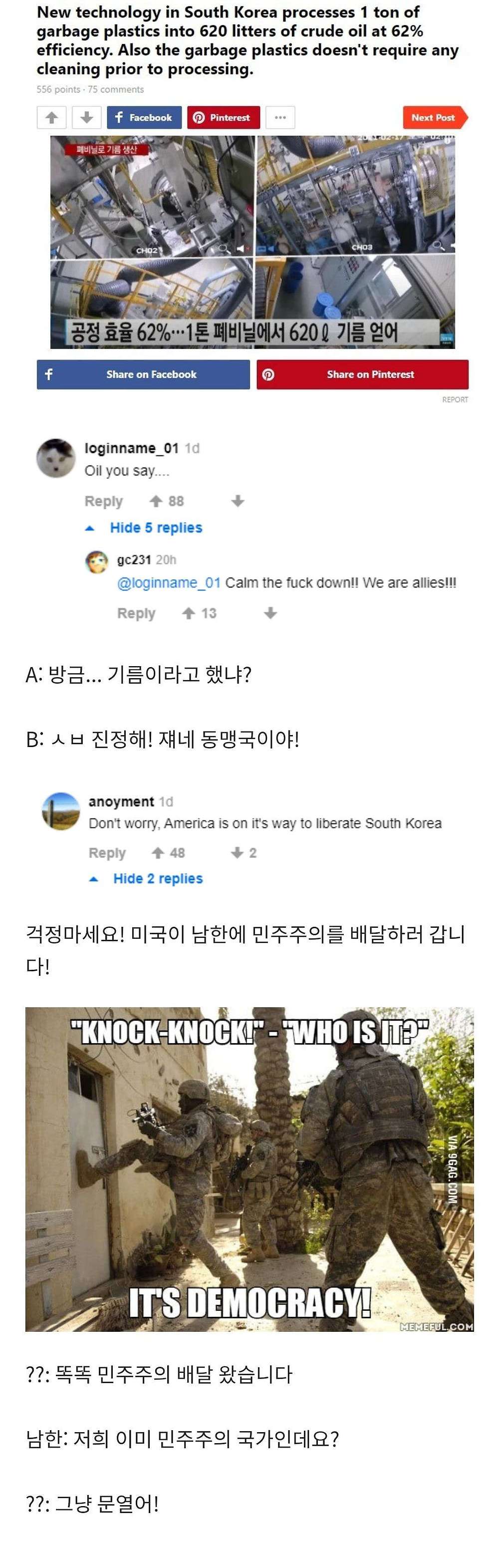 [유머] 한국, 폐비닐에서 기름을 뽑는 기술 개발해