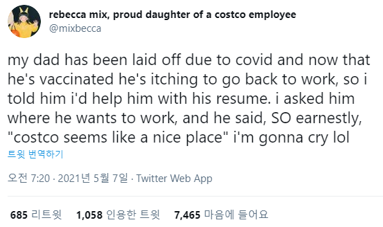딸인 레베카씨는 아빠가 얼마나 코스트코에서 일하고 싶어하는지