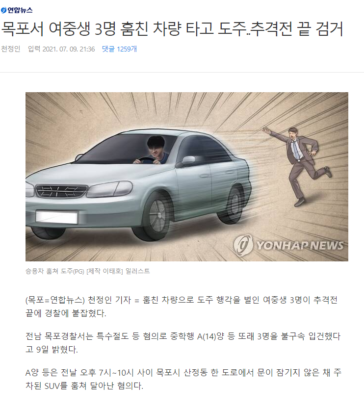 [유머] 목포서 여중생 3명 훔친 차 타고 도주, 추격전