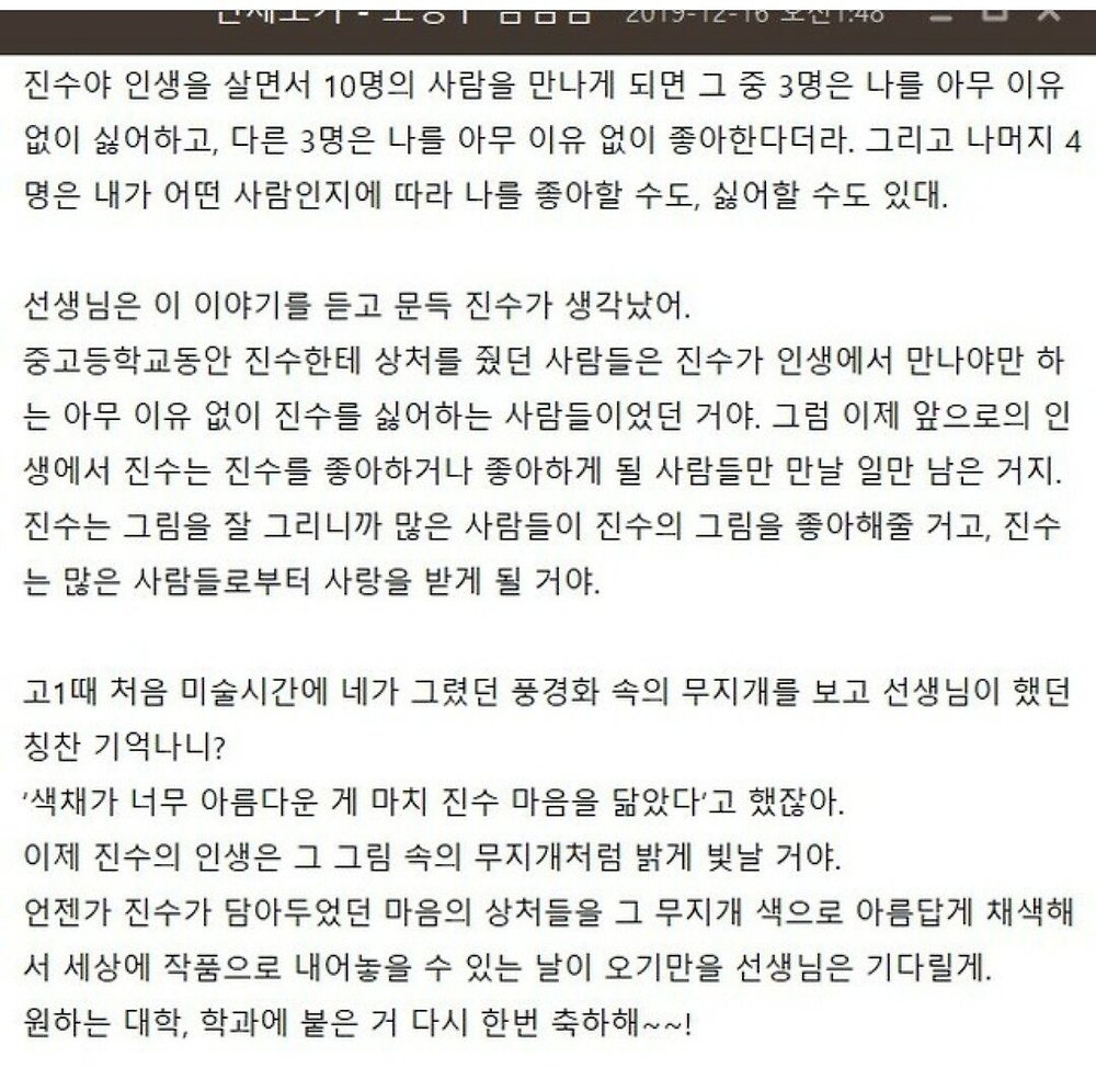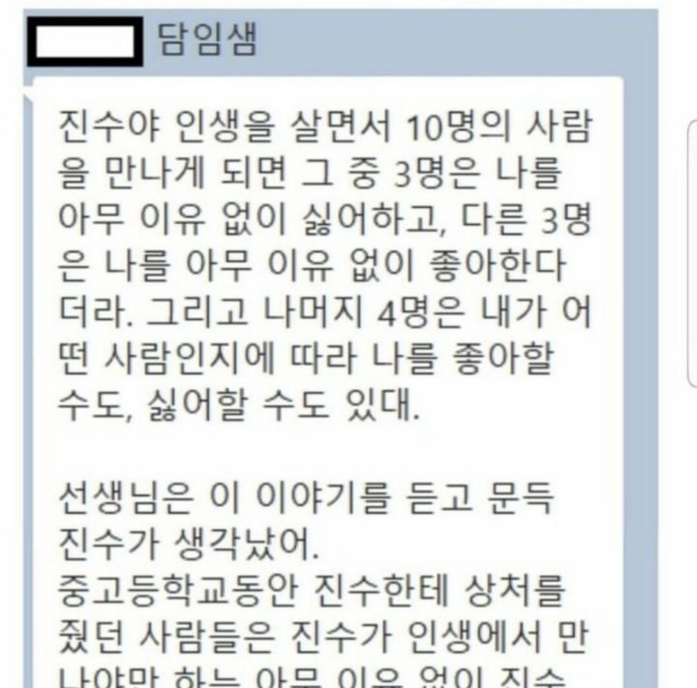 [유머] 왕따 당하던 학생에게 선생님이 보낸 카톡