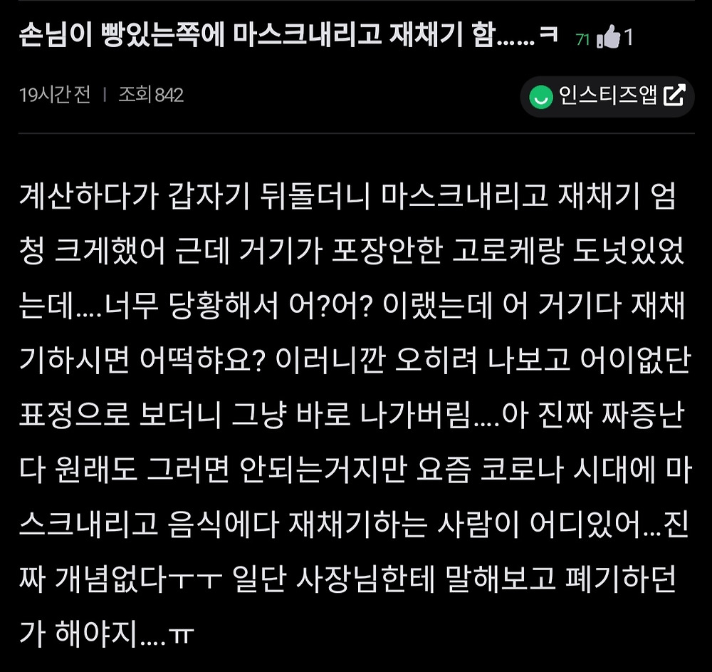 [유머] "손님이 매장 빵에다가 재채기함..."