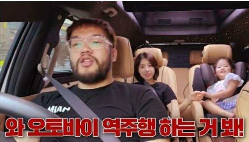 오토바이가 역주행해서 넘어와서 피하려다가 부딪힐 뻔 하고 한번 째려보고 감 딸이랑 와이프 있어서 안 내리고 참았다고 함