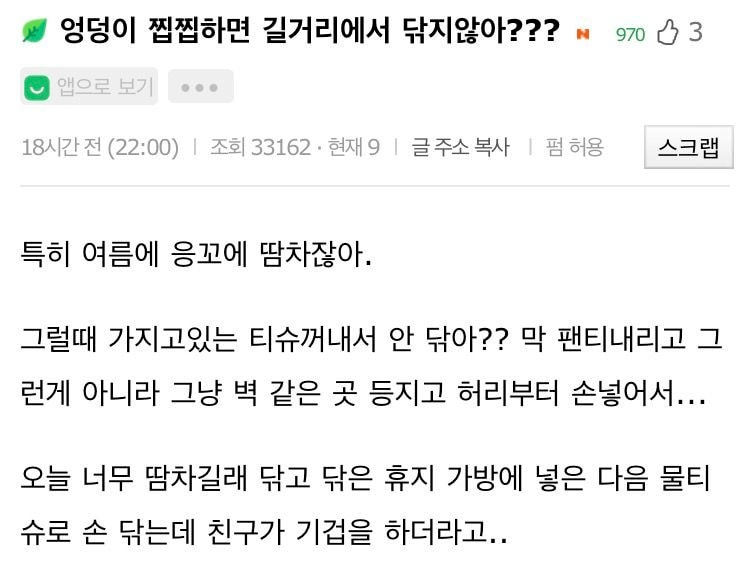[유머] 엉덩이 찝찝하면 길거리에서 닦지않아?
