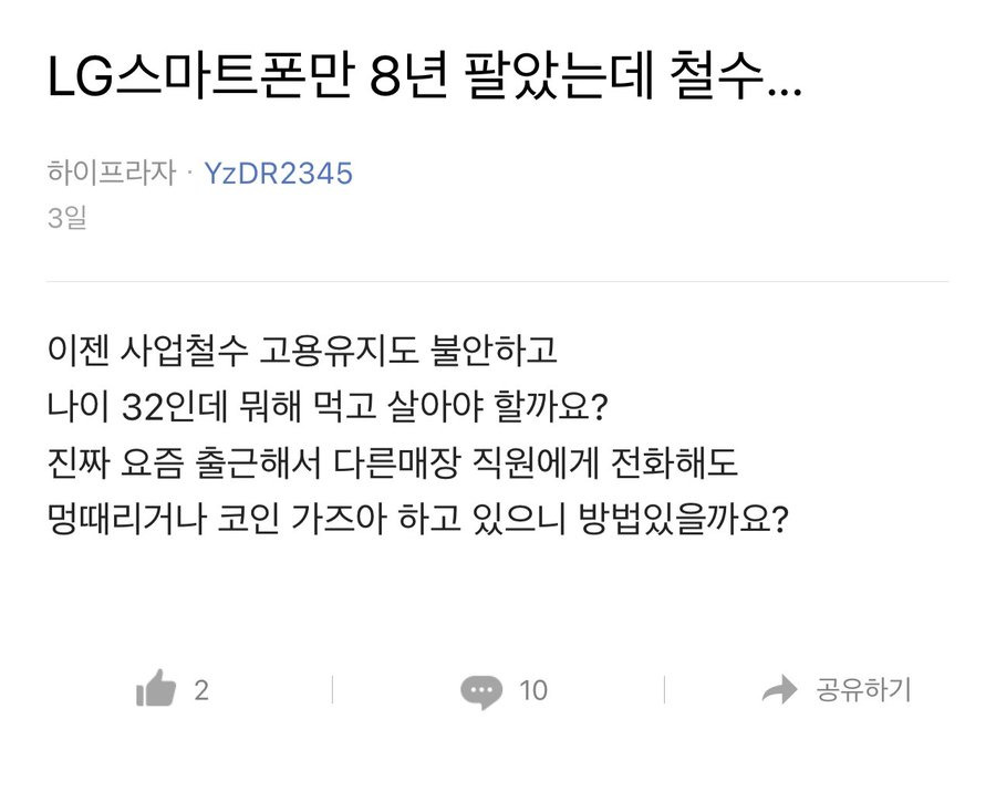 [유머] LG스마트폰만 8년 팔았는데 철수