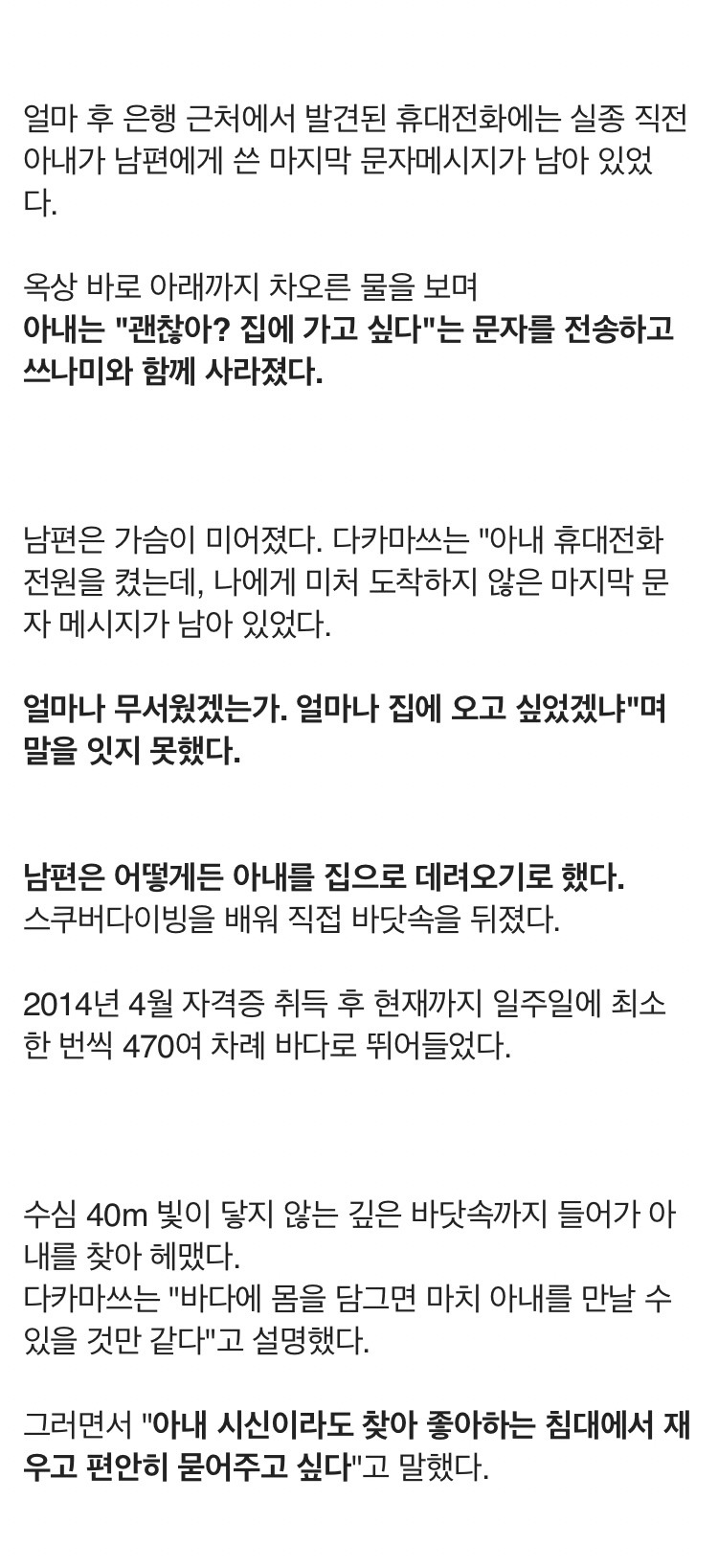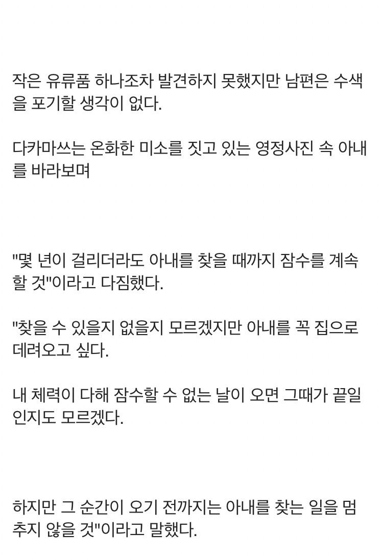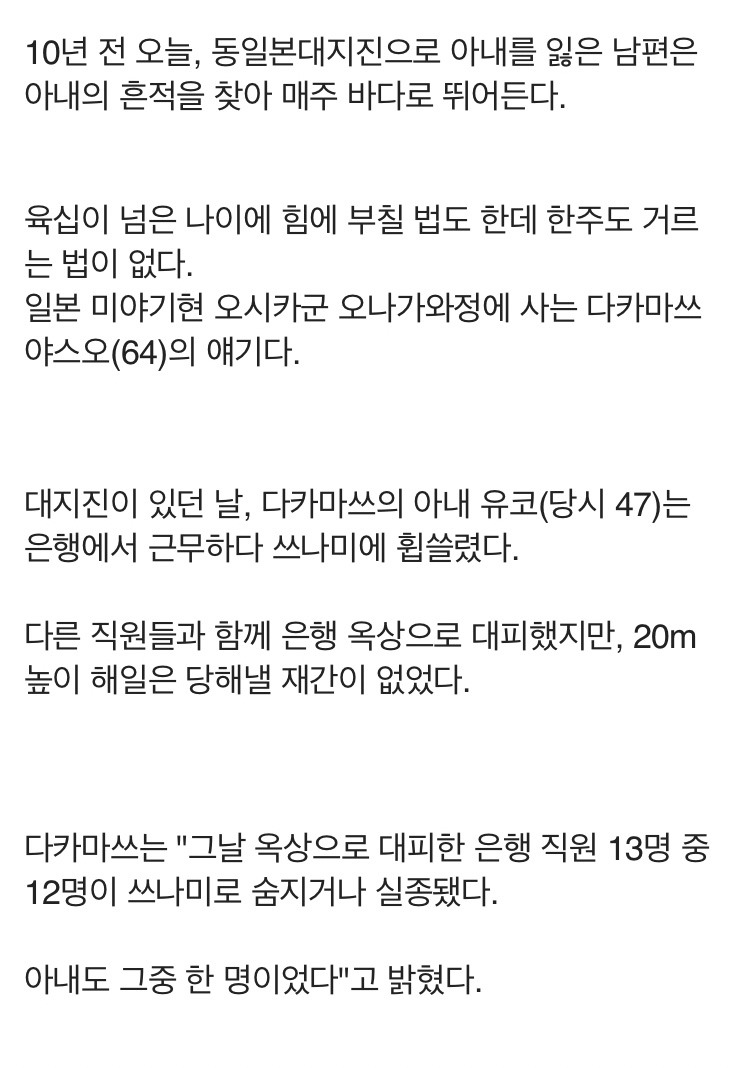 [유머] 동일본대지진 때 실종된 아내 찾아 10년째 바다 뒤지는 남편