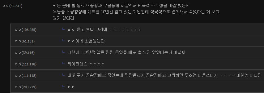 종현이는 여초에서 작정하고 괴롭혀서 죽인거아님? 워마드랑 여시였나 거기서 콘서트티켓 전부 구매한뒤 위약금 안내고 취소할수있을때까지고 가지고있다가 위약금안내고 취소할수잇는 마지막날 예약취소하는방식을 콘서트내내해서 콘서트 망하게하고 DM같은걸로 욕적어서보내는것같은방식으로 괴롭혀서 우울증심해져서 자살한걸로 알고잇는데