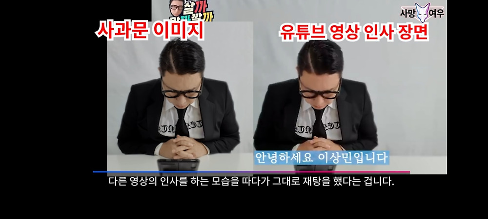 문제점:사과문에 동영상도 없고 풀 텍스트에 사진 하나만 덩그러니 있는게 그 사진도 인사하는 사진 재탕이다