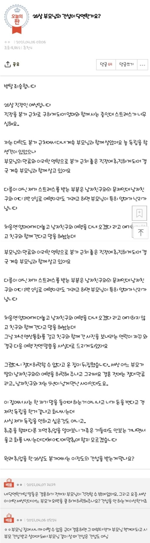 분가하기전엔 간섭받는게 당연한거 아닝가
