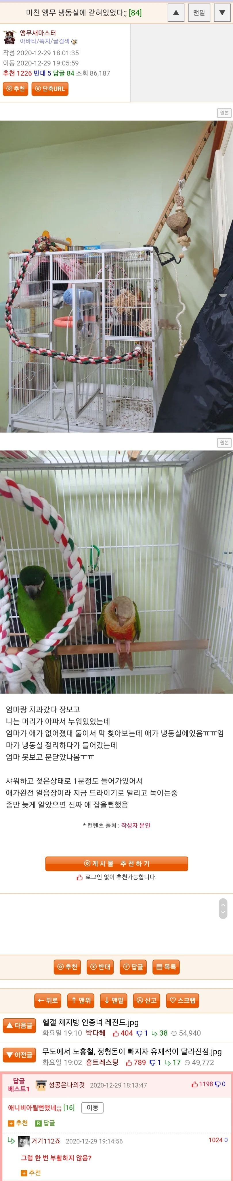 [유머] 미친 앵무새 냉동실에 갇혀있었다
